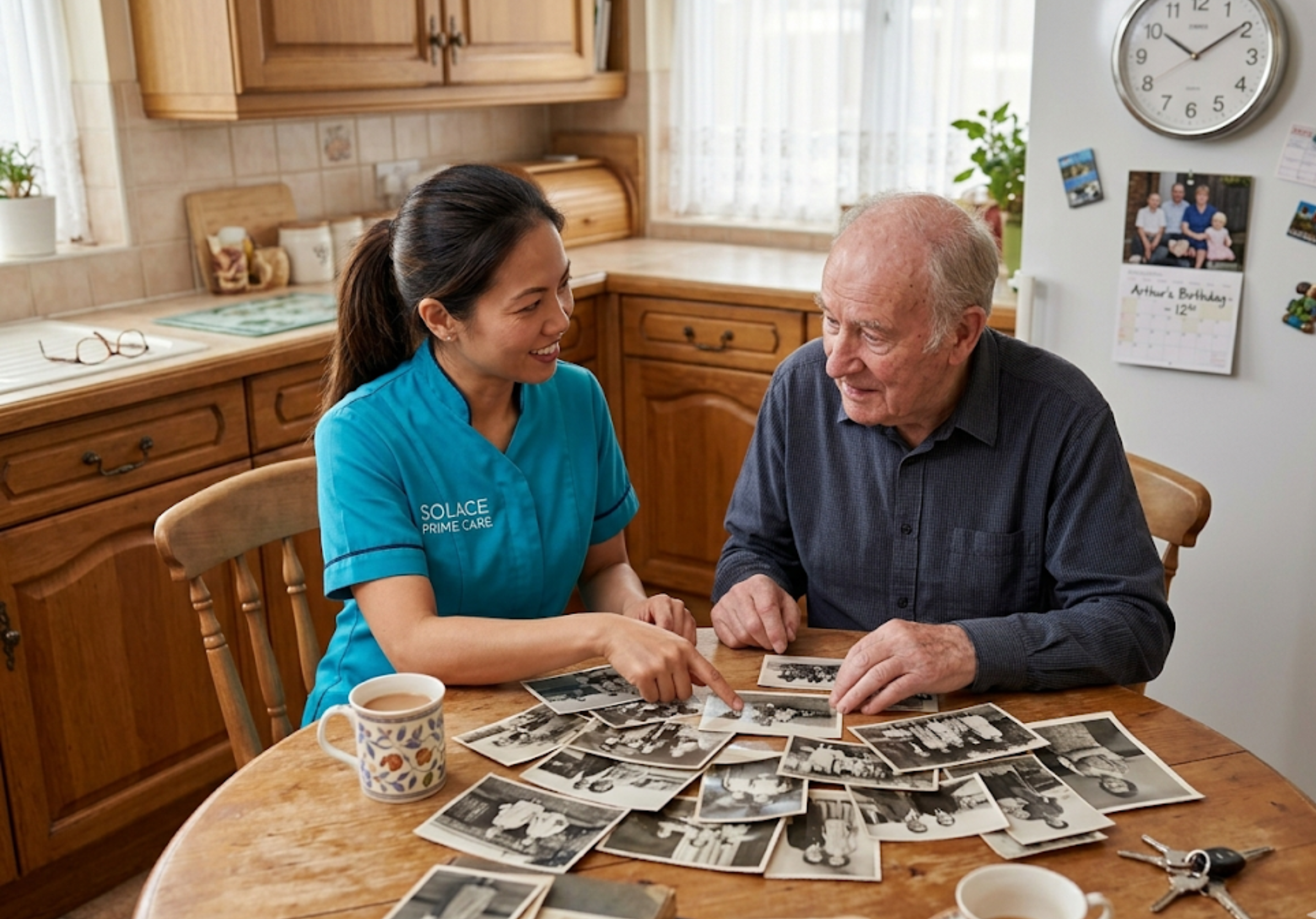 At Solace Prime Care, our dementia care service is built around consistency, familiarity, and calm. We match clients with a small, stable team of carers who get to know them — their history, their preferences, their routines, and the things that bring them comfort.